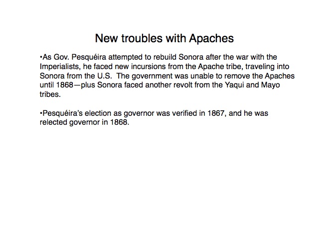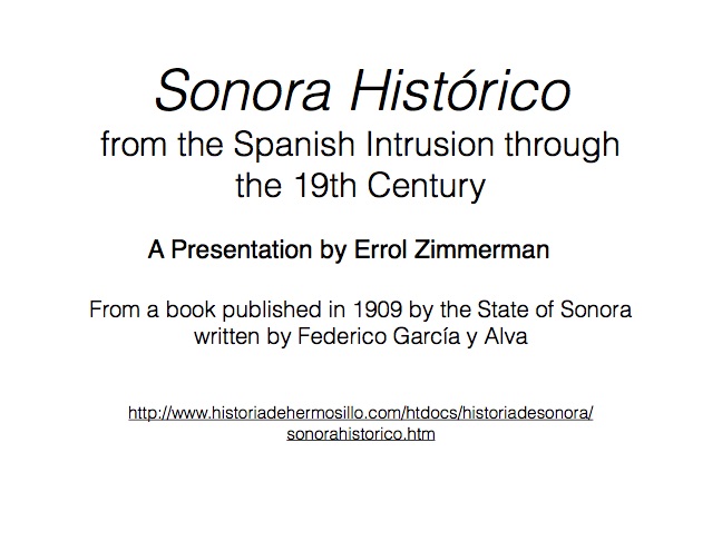 Federico García y Alva published “Sonora Histórico” for the government of Ramón Corral (1895-1899), and the 65-page document outlined Sonora’s ancient past through the 1897 peace treaty with the Yaqui tribe. The document has been translated by Errol Zimmerman, who gave this presentation to the History Association on Nov. 3 (Part 1) and Jan. 5 (Part 2).